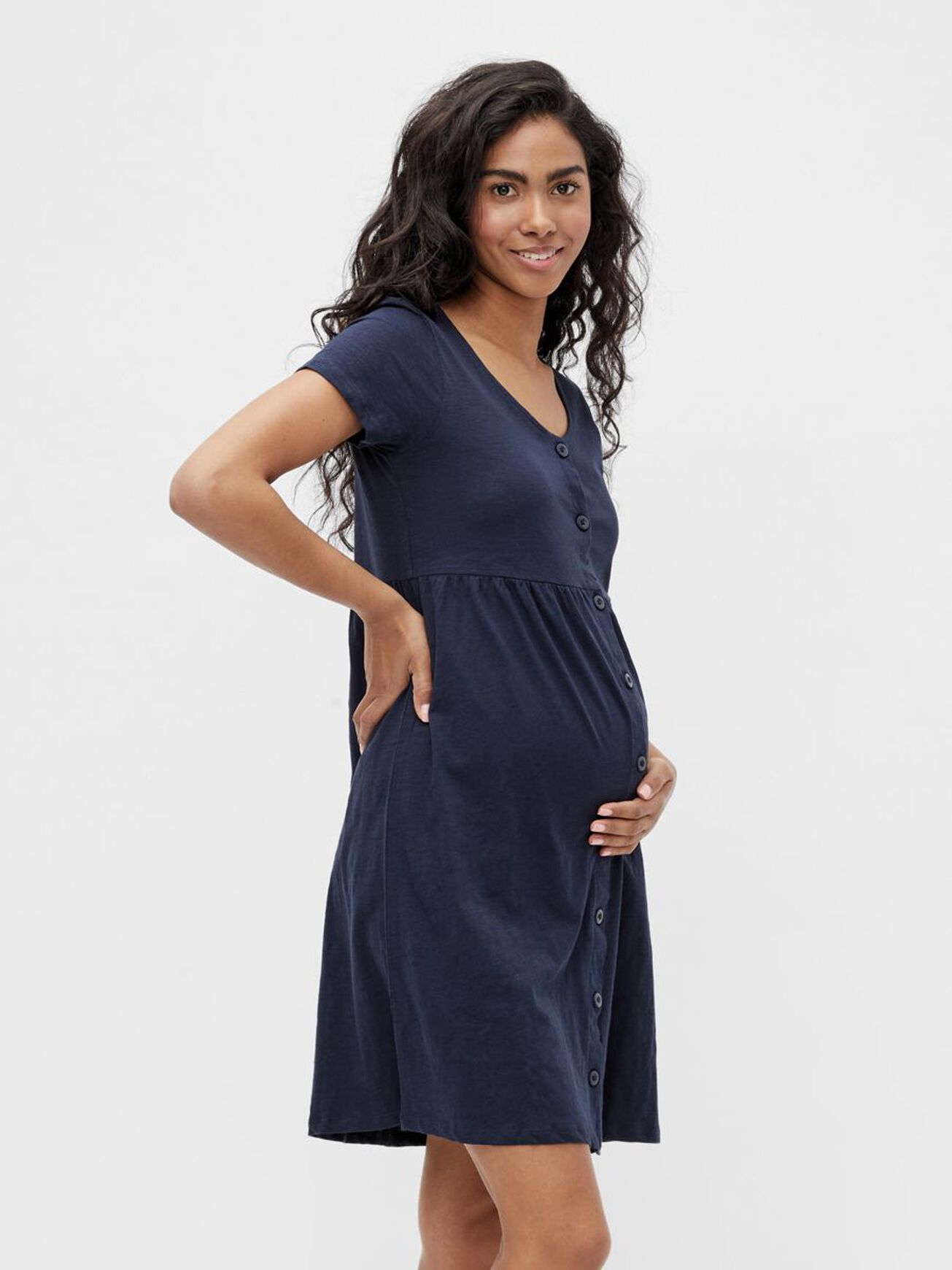 Mamalicious Jana gravidklänning är en vacker klänning för graviditet och amning. Den nya mörkblå färgen är lätt att matcha med andra kläder.