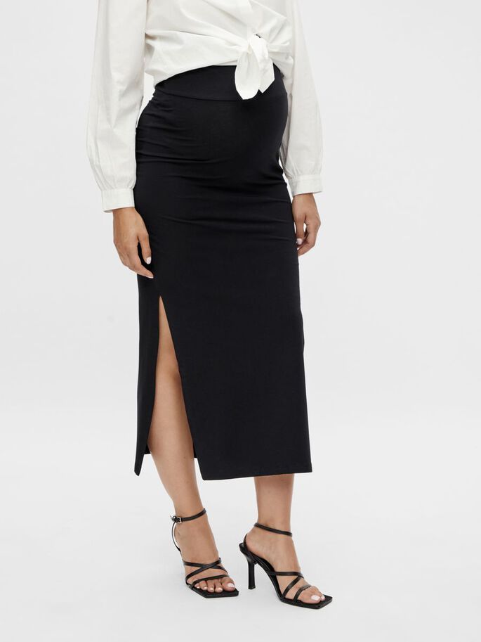Mamalicious Lemma maxikjol svart, Noos är en flexibel svart maxikjol med en vikbar midjeband och en slits på sidan.