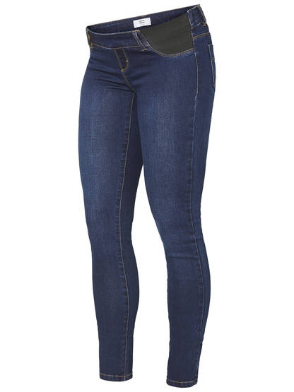Mamalicious Lola slim gravidjeans i Mörkblå Denim är bekväma, slim fit jeans för blivande mammor. De har elastiska partier i midjan som töjer sig med den växande magen. Jeansarna har bakfickor och bälteshällor. De mörkblå jeansen är lätta att kombinera med vilken topp som helst för arbete eller fritid.
