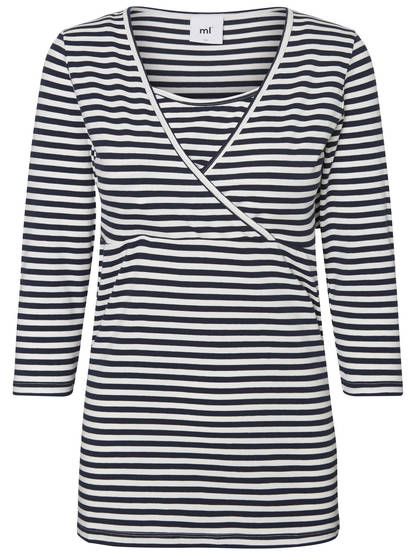 Amningströjan Mamalicious Lou Organic Tess Navy Blazer 2-Pack är ett paket med två stycken bekväma amningströjor i ekologisk bomull med 3/4-ärmar. Tröjan har topp-liknande amningsdelar som är dolda under ett omslag i fronten. Förutom amning kan tröjorna även användas under graviditeten. Färgen är Navy Blazer, där den ena tröjan är randig och den andra enfärgad.