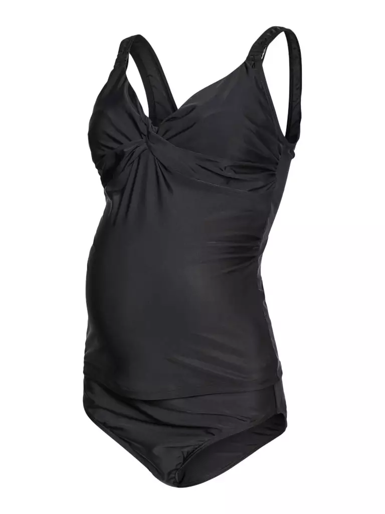 Stilren svart Mamalicious baddräkt för gravida. Rynkad detalj fram, elastiskt material och gott om utrymme för en växande mage.