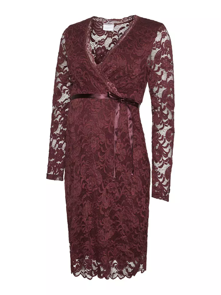 Mamalicious Mivana Gravidklänning Winetasting är en vacker och festlig spetsklänning för gravida. Klänningen har långa ärmar och ett knytbart bälte som framhäver den växande magen på ett snyggt sätt. Festklänningen har gott om utrymme för den växande magen och är stilren att använda även efter graviditeten.