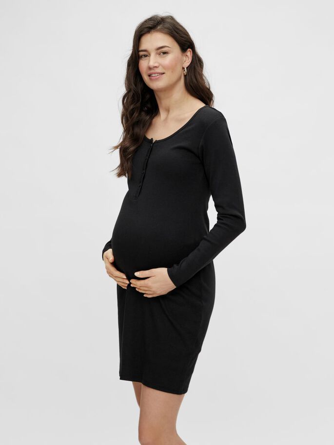 Mamalicious Nila gravidklänning Black - för väntan och amning är en långärmad klänning som kan användas under graviditeten och efteråt. Klänningen har rund halsringning och vacker knäppning fram. Klänningen passar bra för arbete och fritid.