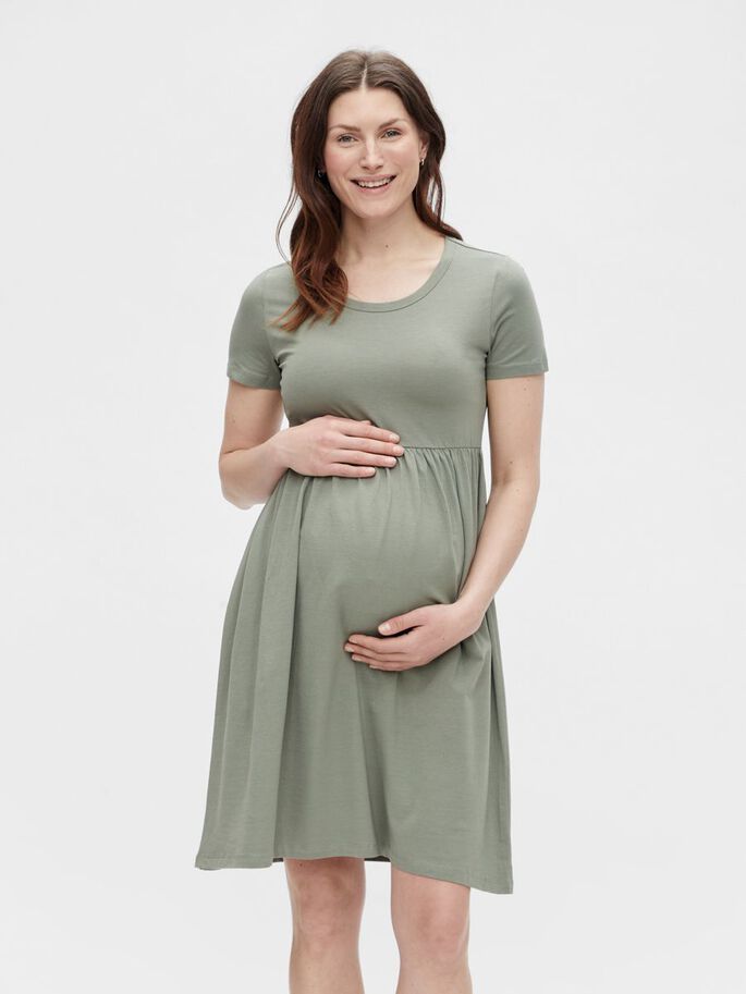 Vacker grön klänning för gravida. Lätt att kombinera med sneakers eller leggings.