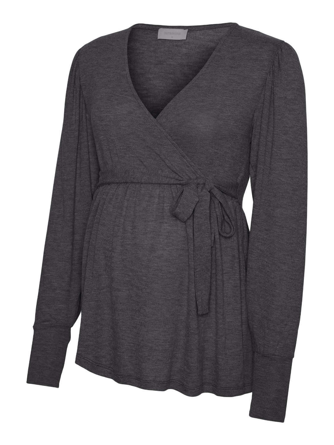 Mamma T-shirt Anabella Tess Black-Dark Grey Melange är en långärmad tröja för graviditet och amning. Det elastiska och mjuka materialet är bekvämt att ha på sig.