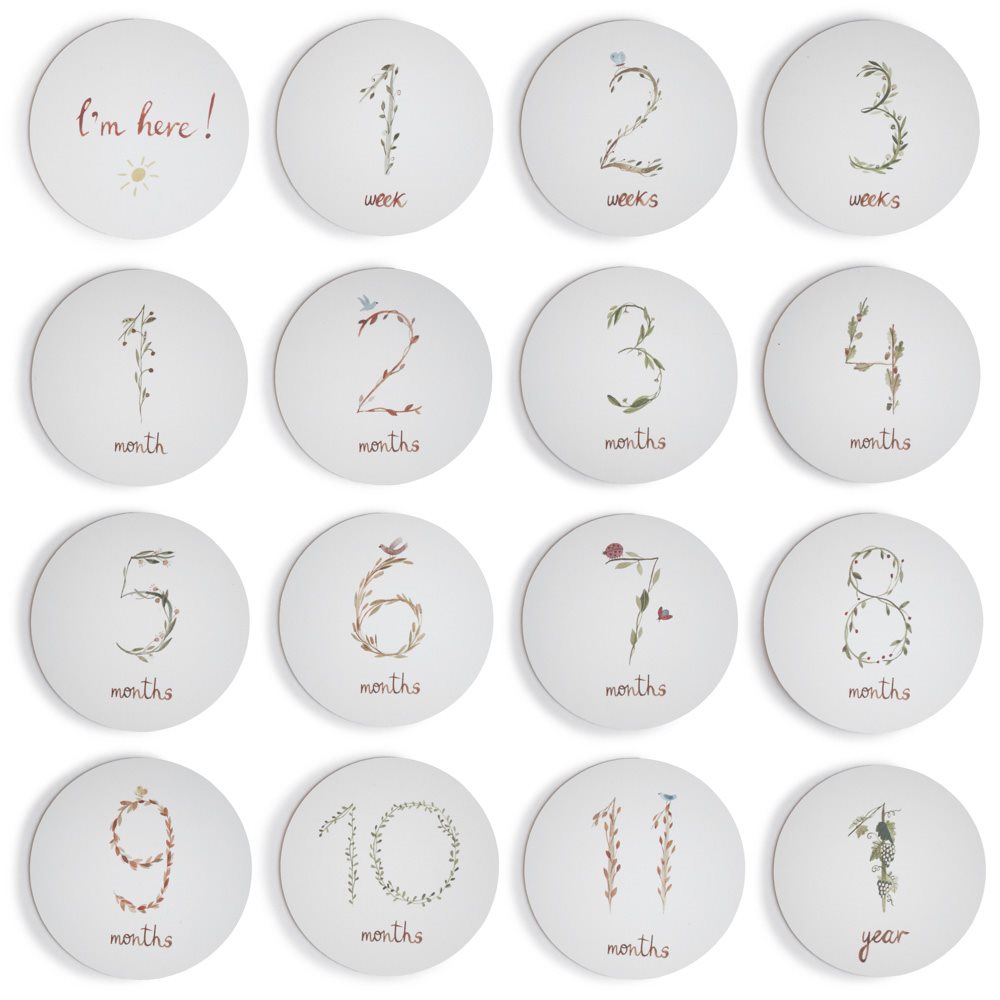 Mushie Milestone-kort för baby är vackra och låter dig på ett fint sätt föreviga ditt barns viktiga stunder i bilder med hjälp av dessa vackra kort. Med dessa kort skapar du underbara minnen till fotografier och fångar viktiga stunder, samt skriver ner de viktigaste minnena på kortets baksida.