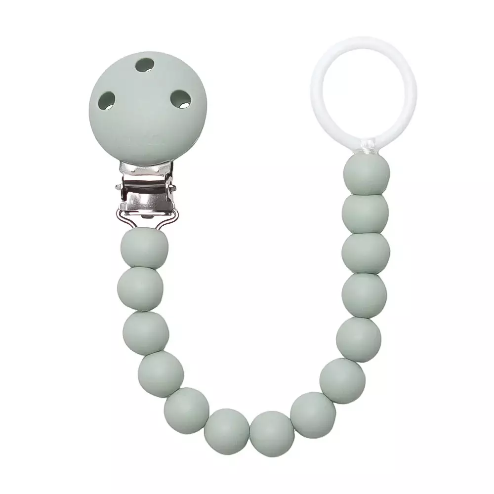 Småbarnssnodd Mylo Sage är en vacker och iögonfallande snodd som håller nappen säker och förhindrar att den tappas på golvet eller försvinner.