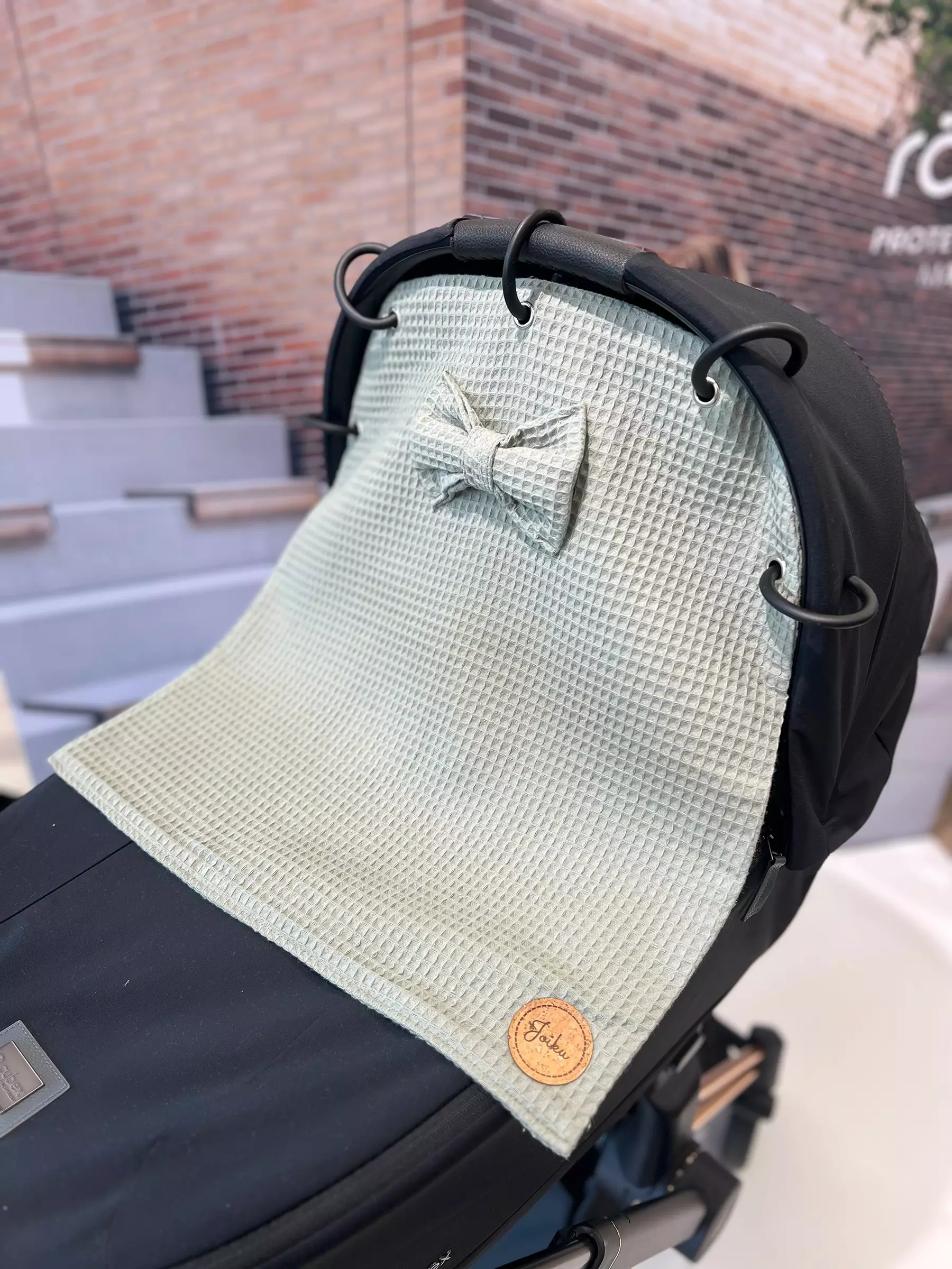 Det inhemska, mjuka JoiKu vagnskyddet är tillverkat av mjukt våffeltyg. Det söta detaljerna är en fin rosett.