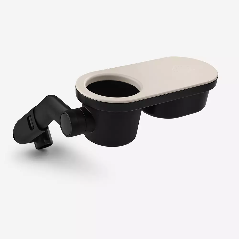 Bugaboo Tray bricka Black/Taupe gör att barnets dryckesflaska och snacks alltid är tillgängliga för barnet. Brickan har en inbyggd öppning för dryckesflaskan som håller flaskan på plats så att den inte kan läcka eller falla ur. Brickans lock kan skjutas åt sidan och i brickan kan barnet ha sina egna snacks, som de kan ta när de vill.