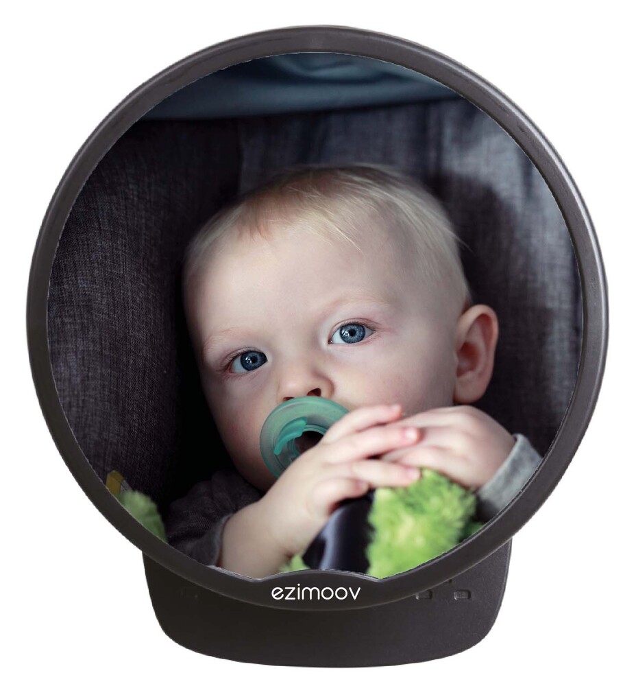 Ezimoov bakåtvänd bilstolsspegel Mirror Round är en miljövänlig spegel som fästs vid nackstödet på baksätet, vilket gör att föraren tryggt kan observera barnet som sitter bakåt i bilen. Den runda spegeln kan ställas in 360° och passar alla typer av fordon.