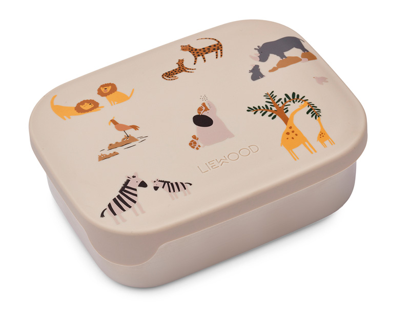 Liewood Arthur matlåda är en delad matlåda i rostfritt stål med silikontäckning, som är indelad i tre sektioner. Täckets design fungerar som en separat tallrik för måltider.