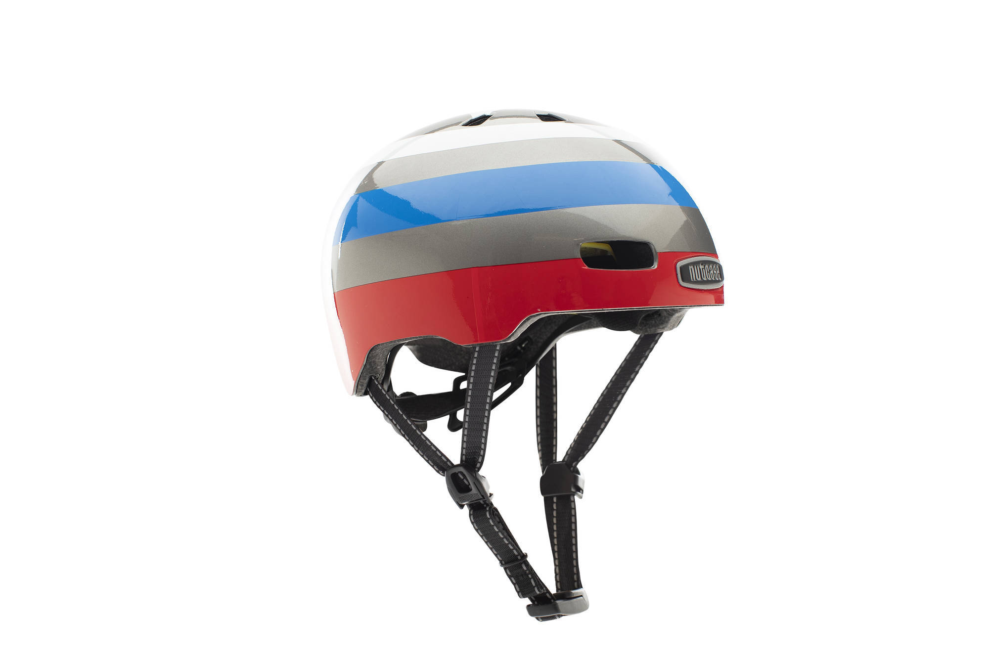 Nutcase Little Nutty Mips cykelhjälm S 52-56, har en livlig randig design för barn. Nutcase sätter standarden för roligt när det kommer till barnhjälmar. Helt nya Little Nutty höjer ribban igen: den har MIPS, ett ledande säkerhetssystem samt en skyddande Crumple Zone EPS-inredning.