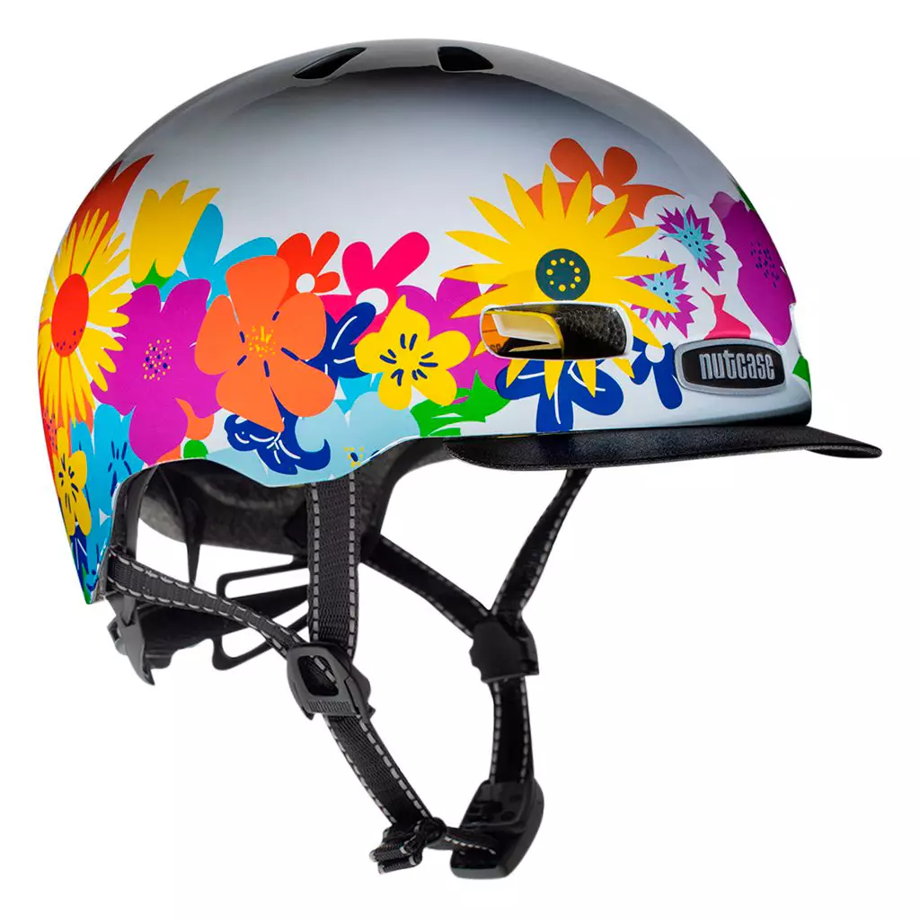 Nutcase Little Nutty Mips cykelhjälm XS 48-52, Wild Child för barn, med ett livligt blommönster. Nutcase sätter standarden för rolighet när det gäller barnhjälmar. Helt nya Little Nutty höjer ribban igen: den har MIPS, det ledande säkerhetssystemet samt en skyddande Crumple Zone EPS-skumfyllning.