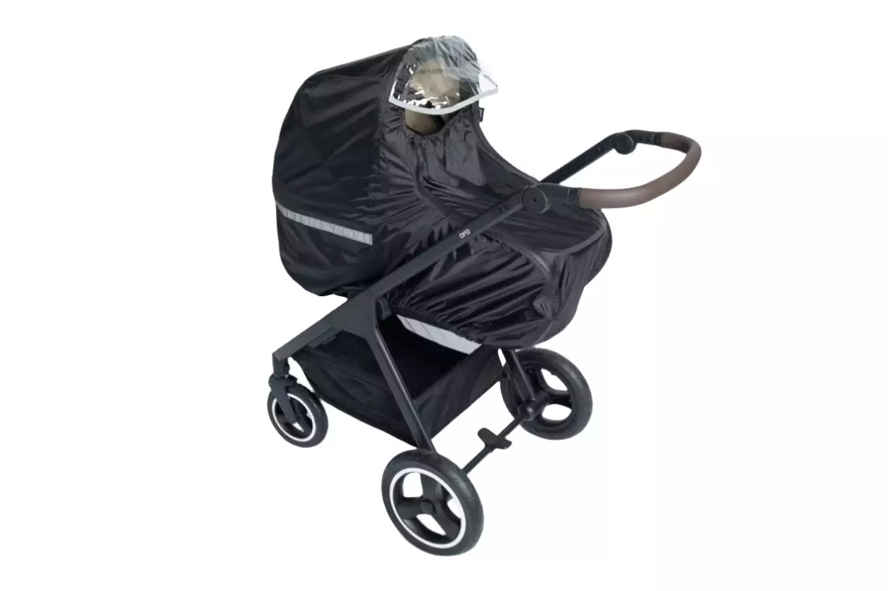 Regnskyddet är universellt utformat och passar alla Ora sulkies samt nästan alla andra barnvagnar och sulkies på marknaden.