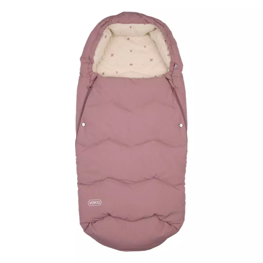 Voksi Explorer New dunvärmet säck Grape är en mjuk och högkvalitativ värmesäck för barn i vagnen, på barnvagnen eller i bilbarnstolen under kalla vinter dagar. Värmesäcken har en överdel med värmeisolerande dunfyllning och en underdel med varm och fukttransporterande ullfyllning, som också värmer när den trycks ihop under barnet. Ullens naturliga fukttransporterande egenskaper gör den oslagbar i barnvagns- och bilbarnstolsanvändning. Inre fodret är av bomull, och ovansidan är av hållbar, matt nylon.