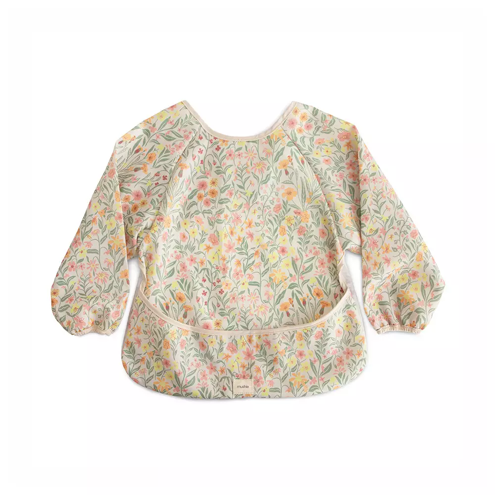 Hängande matta Mushie Pastel Blooms skyddar barnets kläder under måltider, pyssel och andra kladdiga aktiviteter. Dess breda ficka samlar upp överbliven mat och hålls på plats tack vare kardborrefästet. Skölj rent och häng upp för att torka eller lägg i tvättmaskinen!