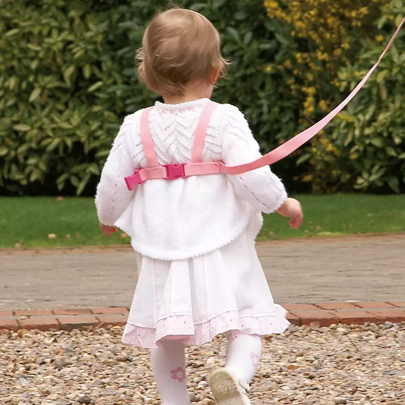 Clippasafe rosa sele för barnvagnar, matstolar, promenader.