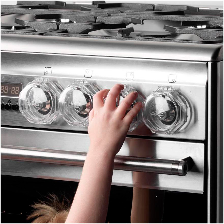 Clippasafe ugnsreglage skydd 4 st hjälper till att förebygga olyckor när barnet själv öppnar ugnens knappar. Skydden passar både gas- och elugnar.