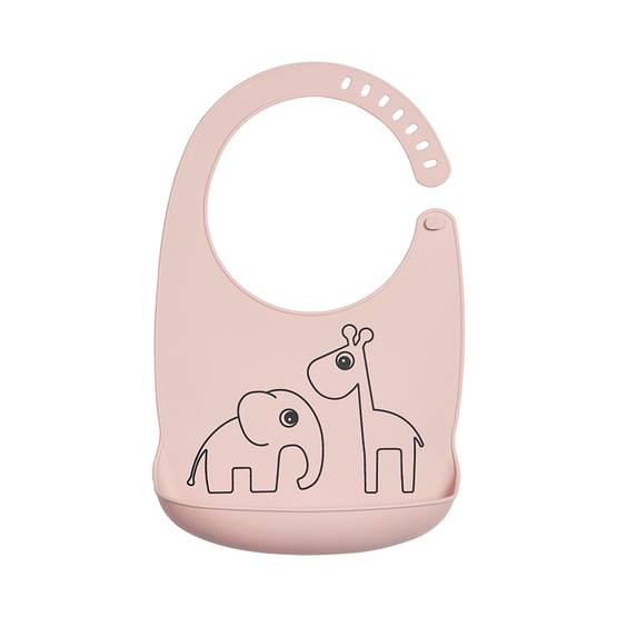 Done By Deer haklapp i silikon Deer Friends, Powder är en härligt ljusrosa haklapp för barnet. Den silikonbaserade haklappen är mycket lätt att hålla ren och är helt vattentät. Den kan även diskas i diskmaskin vid behov. Fickan på haklappens nederdel samlar upp alla nedslagna matrester, så att du slipper plocka upp dem från golvet. Haklappen kan justeras för att passa barnet.