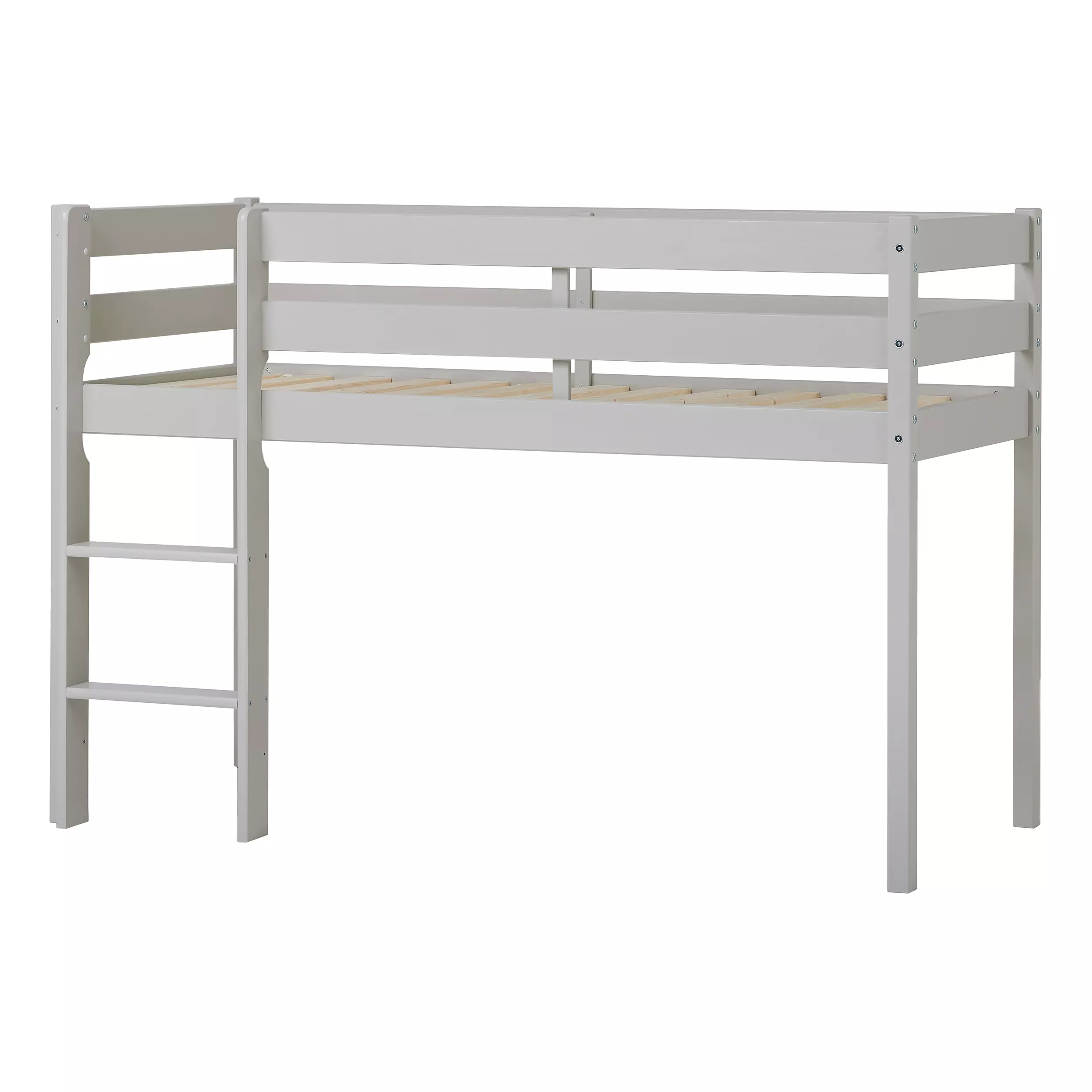 Halvhög säng Material: Nordic Swan Ecolabel furu Viktgräns: 60kg Mått: 166x114x81cm Sängens säkra maximihöjd för madrass: 9cm Höjd under säng: 72cm Tillverkningsland: Lettland
