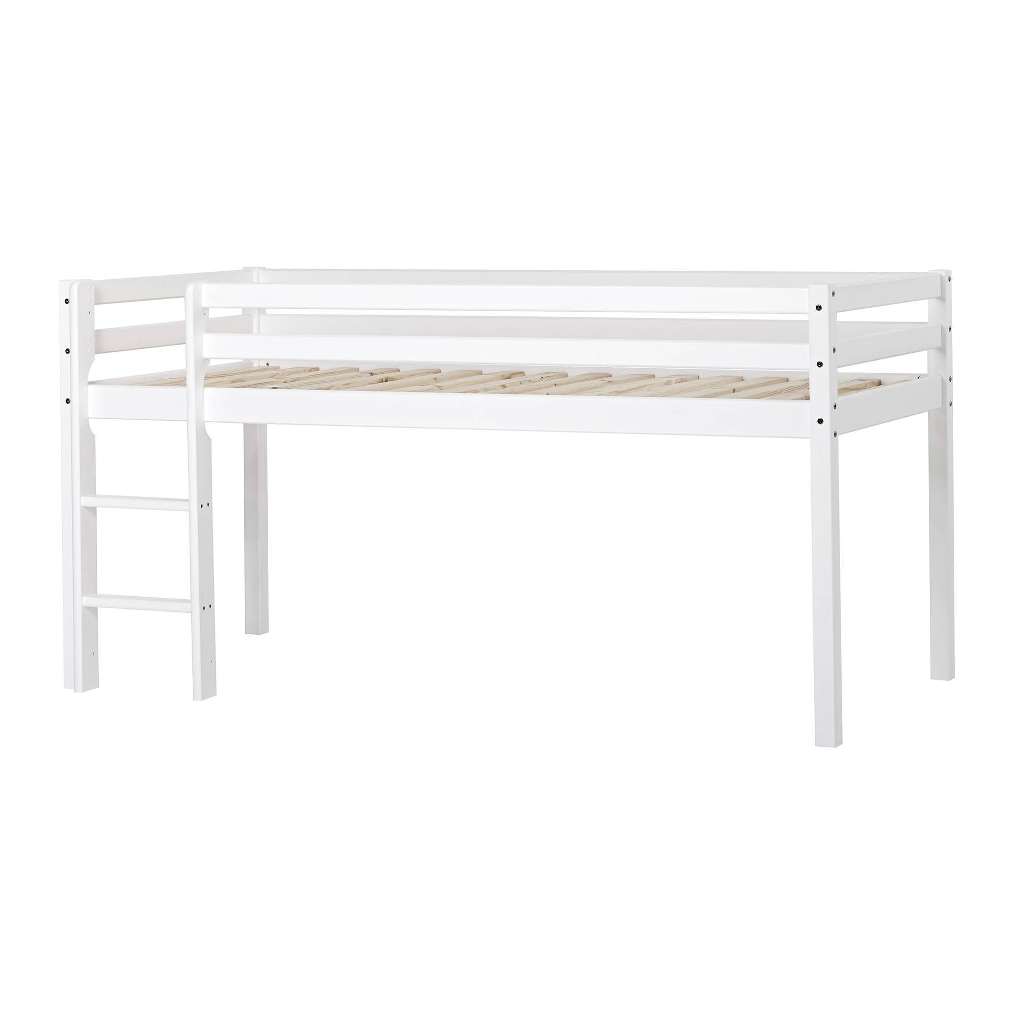Hoppekids ECO Dream halvhöjd säng i storlek 90x200cm är en söt barn säng som har mycket plats under för lek och förvaring av föremål. Sängen, som alla andra sängar i ECO Dream-serien, är märkt med Svanen och har en yta som är behandlad med en vattenbaserad, miljövänlig lack. Det finns många tillbehör som kan köpas till sängen, såsom textilier, madrasser och andra tilläggsdelar. Kan rengöras med en fuktig trasa och mild såpvatten.