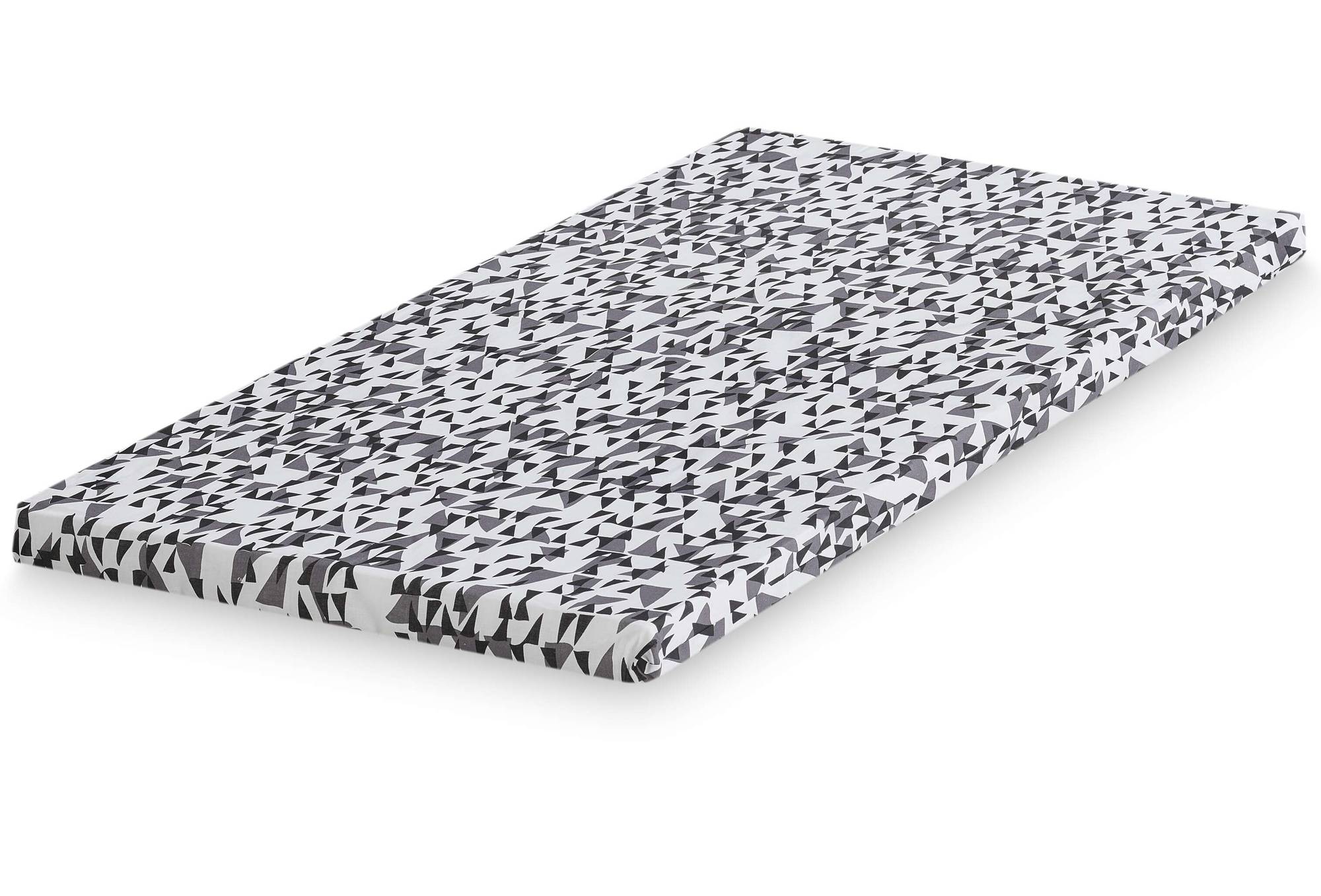 Den inhemska madrassen är mönstrad med ett fräscht grafiskt mönster.