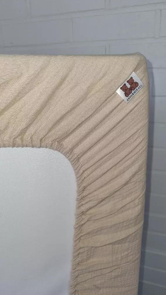Det mjuka, beigefärgade muslinlakanet känns skönt mot ditt barns känsliga hud. Gummibandet är sytt runt hela lakanet för att göra det enkelt att bädda och för att hålla det på plats. Det passar madrasser som är 60 cm breda och 120 cm långa.