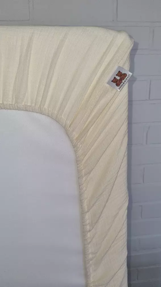 Det mjuka, gräddfärgade harsokvilt-lakanet känns behagligt mot babyns känsliga hud. Gummibandet är sydda runt hela kanten, vilket gör det enkelt att bädda och håller det på plats. Passar en madrass med måtten 60 cm bredd och 120 cm längd.
