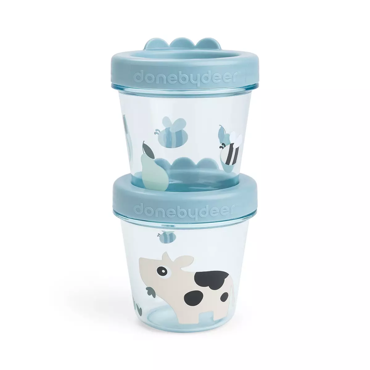 Eväsbehållare Done By Deer Baby Food Container 2-pack Tiny Farm Blue är praktiska förvaring för barnmat på utflykter och i vardagen. Den skruvlock säkerställer att behållarna är både läckagefria och lufttäta, vilket gör dem perfekta för förvaring av snacks och måltider även på resan. Dessutom gör den stapelbara designen dem lätta att förvara.