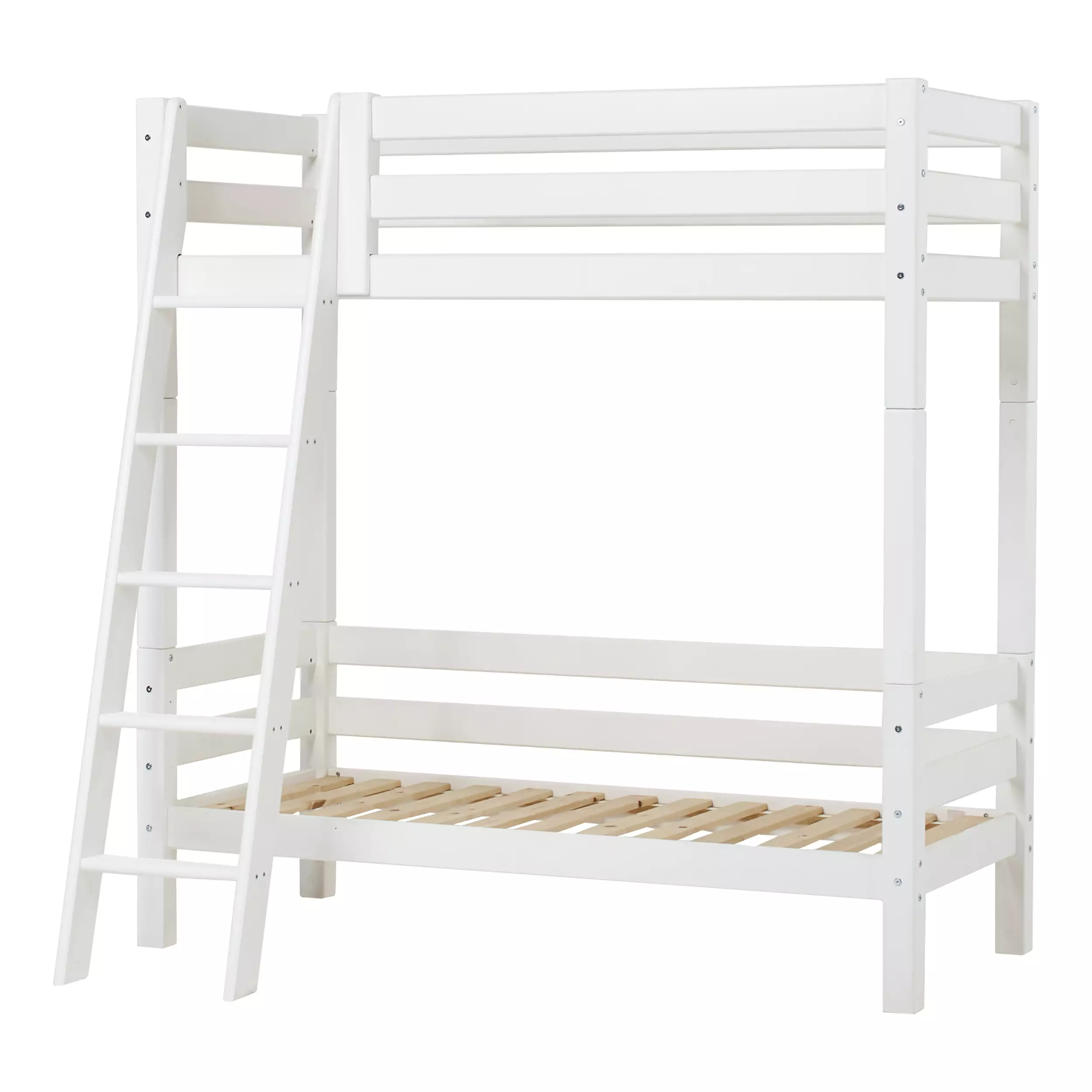 Hoppekids hög loftsäng 70x160 cm med nedre sängs bakre sänggavel och lutande stegar - vit