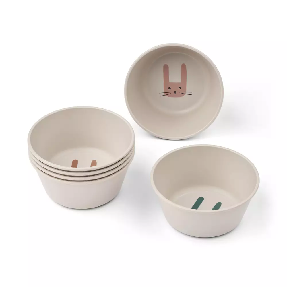 Liewood Cees skål 6-pack Bunny sandy är ett utmärkt val för barnets måltider. Skålarna är tillverkade av 75% återvunnen PET och de är lätta och hållbara för dagliga måltider, picknick eller kalas.