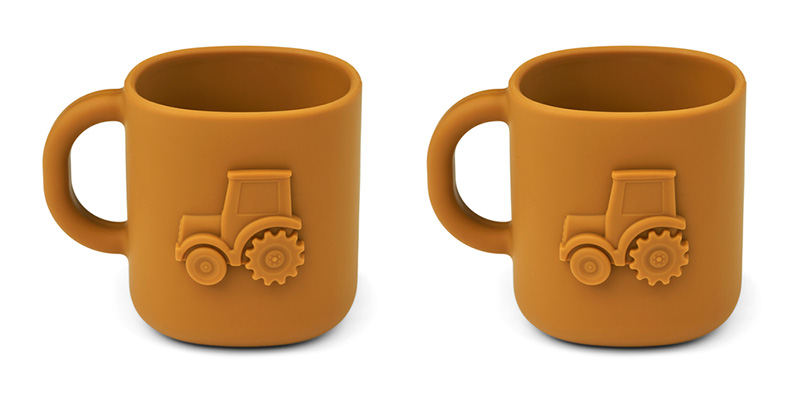 Liewood Chaves muggar 2-pack golden caramel är tillverkade av 100% silikon. Muggarna med handtag är lätta att hålla i och tack vare den silikonbelagda ytan glider de inte på bordet. Det är enkelt för barnet att öva på att dricka ur muggen.