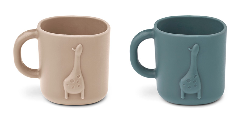 Handtagsmugg av silikon från Liewood med lekfull 3D-design. Innehåller två muggar i olika färger.