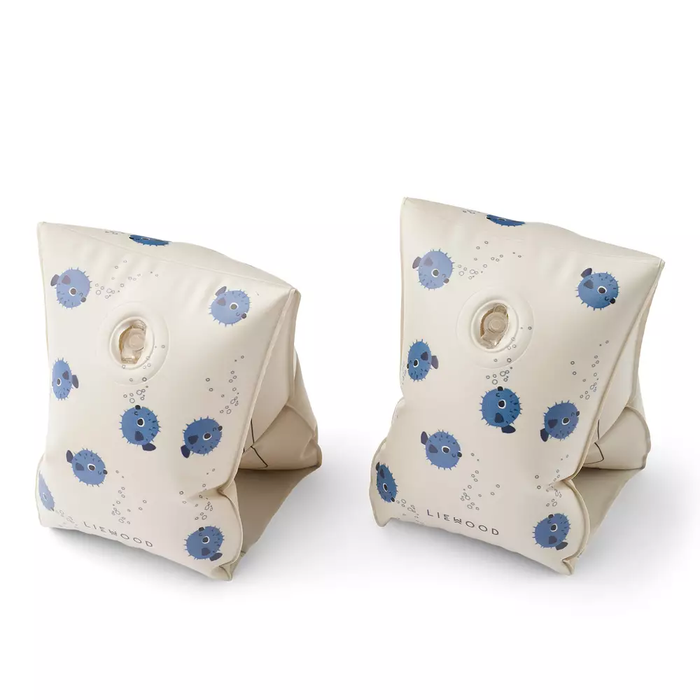 Liewood flytvästar Shirley Pufferfish/Sandy är perfekt för små simmare som lär sig simma. Med de uppblåsbara armkuddarna får ditt barn ett tryggt sätt att öva på att röra sig i vattnet.
