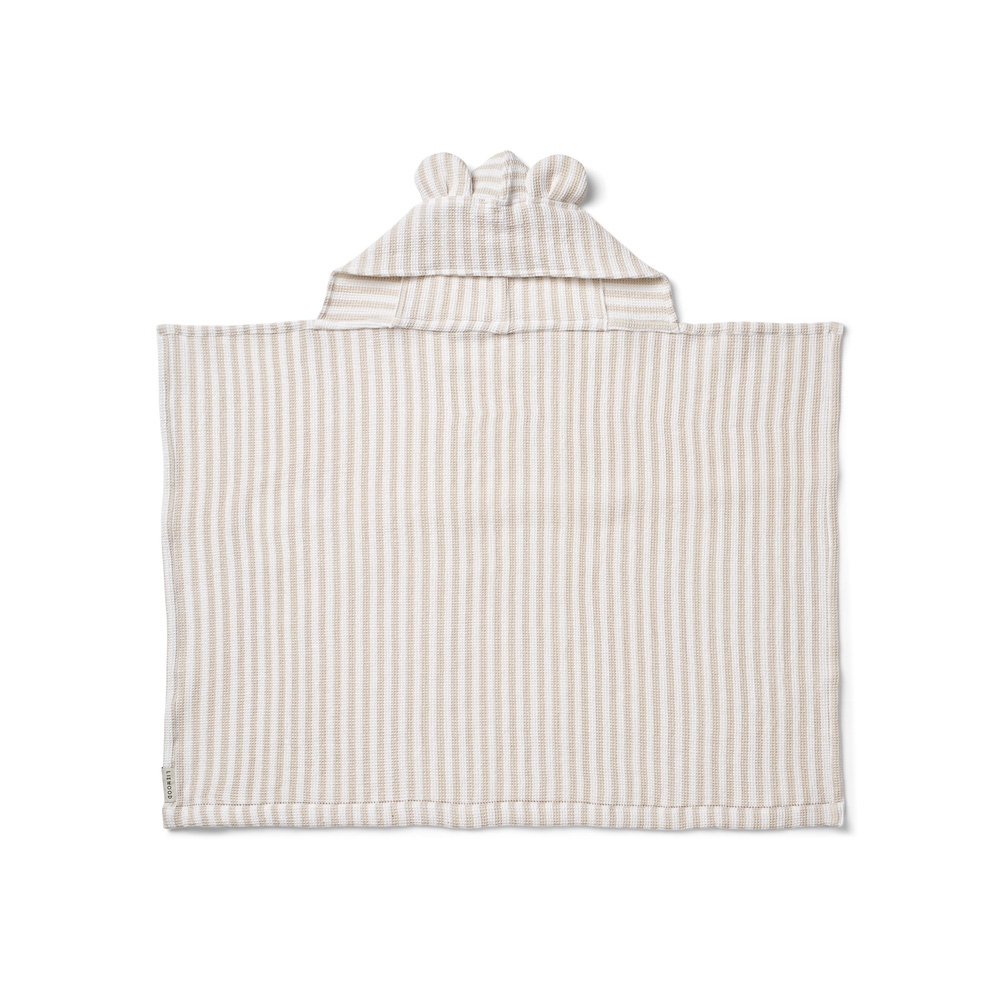 Liewood badlakan Vilas Waffle i randig krispig vit/sandy är ett fantastiskt våffelbadlakan för små bebisar eller småbarn. Badlakanet med ränder är tillverkat av mycket mjukt och mönstrat bomullsfrotté.