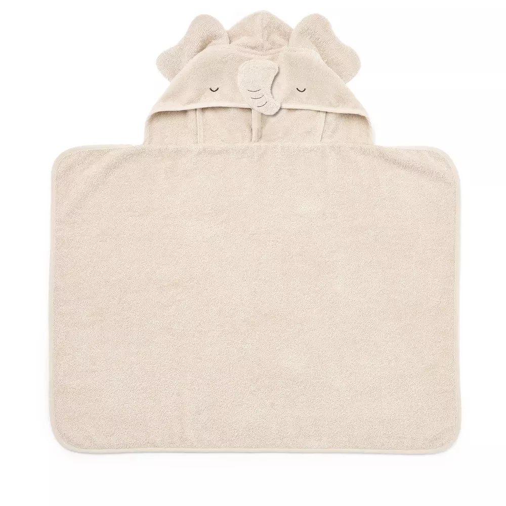 Hupphandduken håller din baby varm efter badet, och tack vare huven faller inte handduken direkt ner på golvet. Hupphandduken har lekfulla elefantöron och snabel som detaljer.