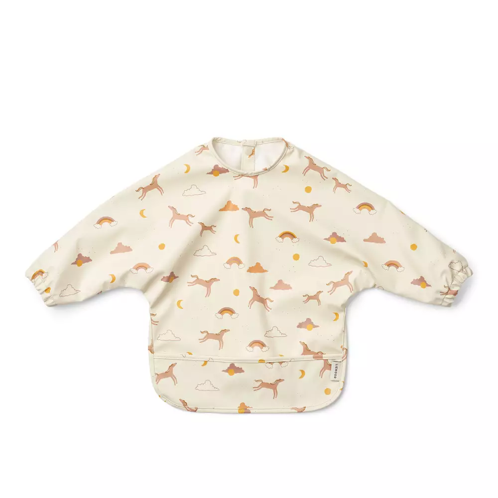 Liewood bib med ärmar är ett praktiskt skydd för barnet när det äter eller sysslar med andra kladdiga aktiviteter. Lätt och snabbt att rengöra.