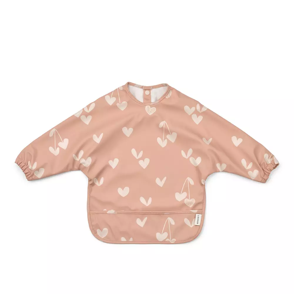 Liewood Merle haklapp med ärmar i Sweethearts/Pale tuscany är ett skydd med ärmar som även kan användas när barnet målar eller pysslar. Den skyddar effektivt ärmarna och kläderna från kladd. Särskilt praktisk vid fingerfödande. Enkelt och snabbt att rengöra – skölj och torka av! Haklappen har en ficka framtill. Haklappen pryds av fina hjärtan.