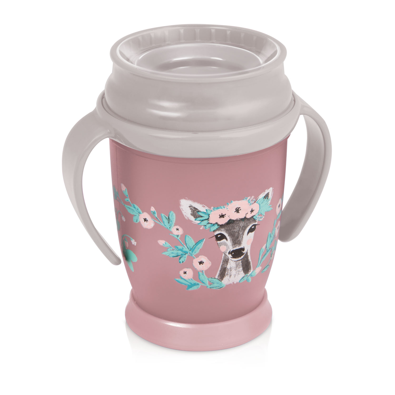 Lovi 360 träningsmugg Junior 250ml Wild Soul Girl är en mugg som är perfekt för att träna på att dricka. Träningsmuggen är idealisk som övergångsmugg för ett växande barn. Med muggen lär sig barnet att dricka utan att spilla. Muggen har en gummibaserad botten som förhindrar att den glider på bordytor, samt en ventil som förhindrar läckage av dryck.