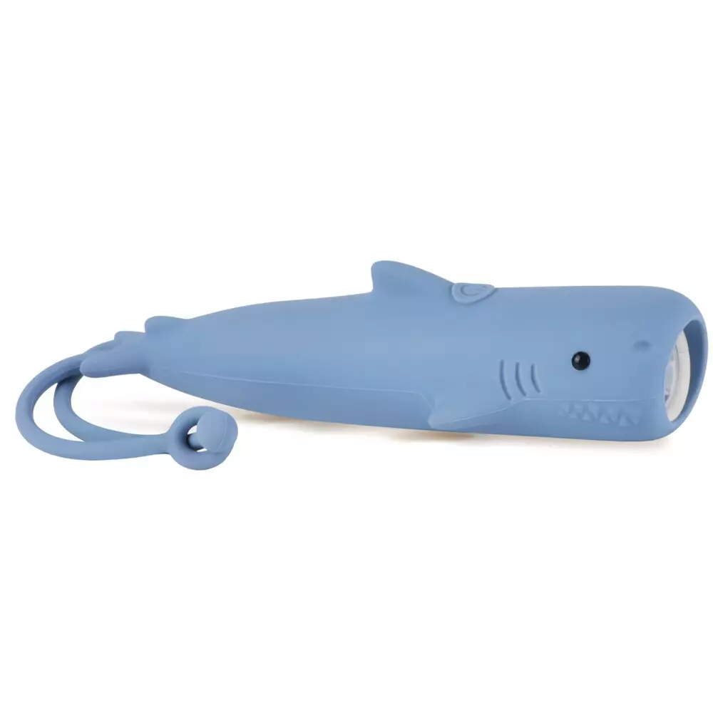 Rabbit & Friends nattbelysning ficklampa Shark Sharky är en rolig hajformad ficklampa, som också fungerar som nattbelysning. Den perfekta kombinationen av skoj och funktionalitet! Ficklampan har två olika ljusstyrkor och är perfekt för utomhusäventyr under mörka kvällar, lekar och sagostunder. Tack vare den halkfria silikonytan sitter lampan stadigt i handen.