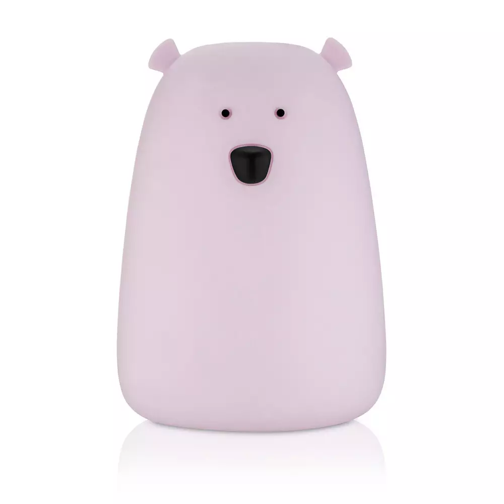 Rabbit & Friends nattlampa Bear Lavender är en underbar nattlampa för de mörka kvällarna. Nalleformad nattlampa lyser upp sin omgivning med ett varmt och mjukt ljus som skapar en lugn atmosfär i barnrummet. Nattlampan har en mjuk silikonyta som ändrar form när man trycker på den och återfår snart sin normala form. Genom att klappa på björnen kan du justera ljusstyrkan.