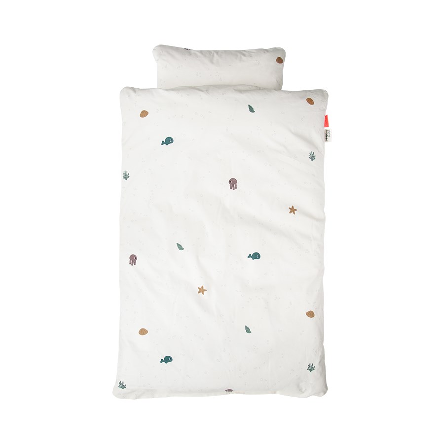 Sängklädesset Done By Deer organic Sea Friends Beige 100x140 innehåller härligt mjuka, bomulliga sängkläder och örngott. I de vackra sängkläderna i beige färg utförs underbara vattenlevande djur.