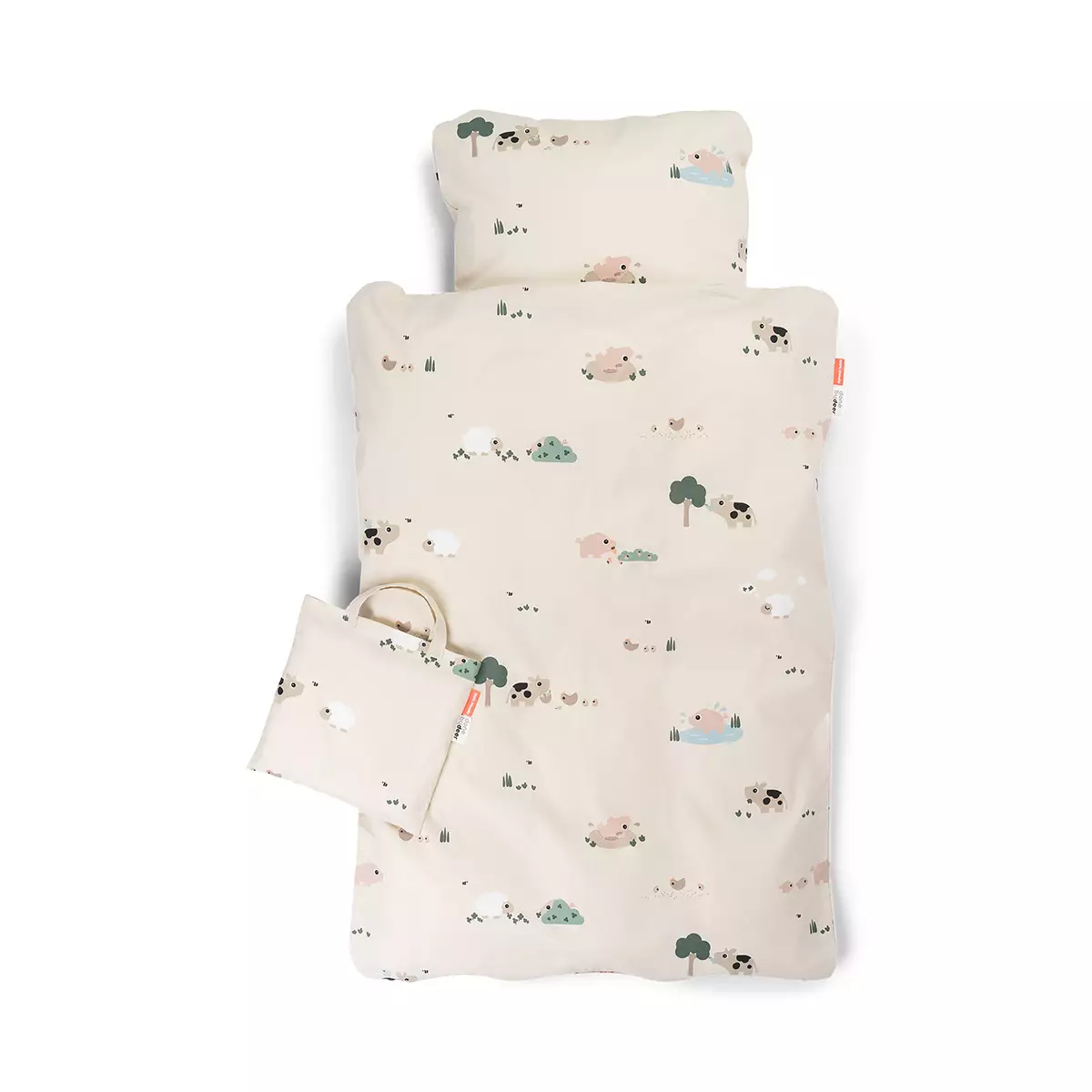 Done By Deer sängkläder är av mjuk bomull som är prydda med söta gårdsdjur. Storlek 70 x 100 cm.