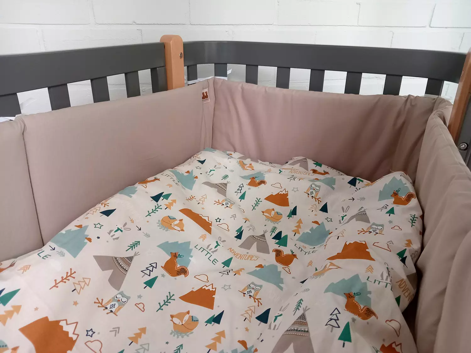 Stödbredden till spjälsängen Anne & Mikael, Beige är en vacker kudde för babyns säng. Det mjuka skyddet dämpar de hårda kanterna på spjälsängen så att barnet inte kan skada sig på sidorna eller få sina ben mellan spjälorna.