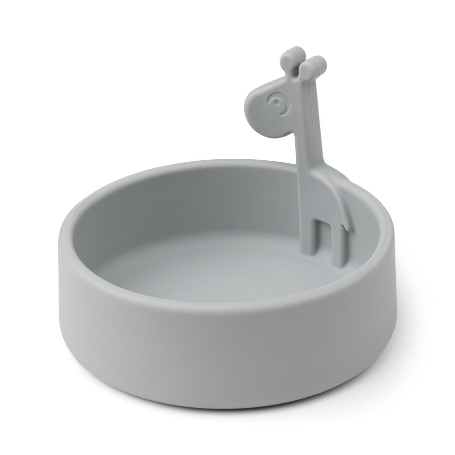 Silikonfat Done By Deer Peekaboo Raffi Grey är en praktisk tallrik för barns måltider. Den söta Raffi-giraffen tittar fram från fatets kant: Peekaboo det är dags att äta!
