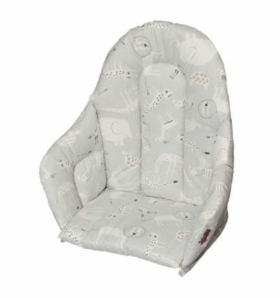 Matstolsdyna Anne & Mikael Safari grå ger extra komfort och ett nytt utseende till barnets matstol. Barnet sitter bättre och trivs bättre i stolen med dyna. Dynan minskar även storleken på en större matstol så att den passar barnet bättre.