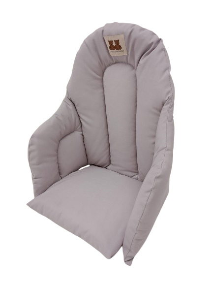 Grå sittdyna som ger komfort och ett nytt utseende till barnets stol. Dynan är tillverkad i Sastamala!