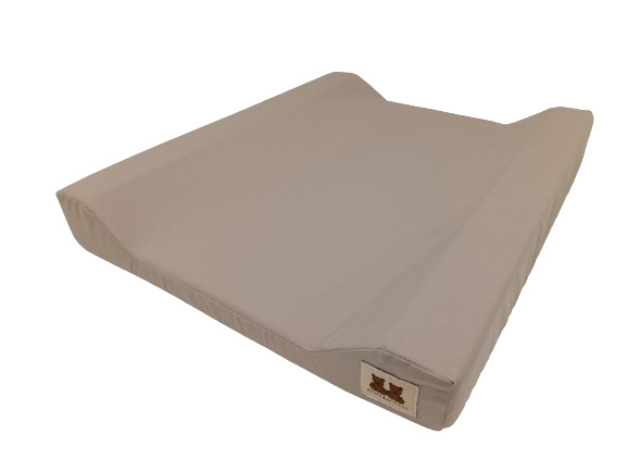 Beige skötbädd tillverkad i Finland. Det avtagbara överdraget kan tvättas i tvättmaskin.