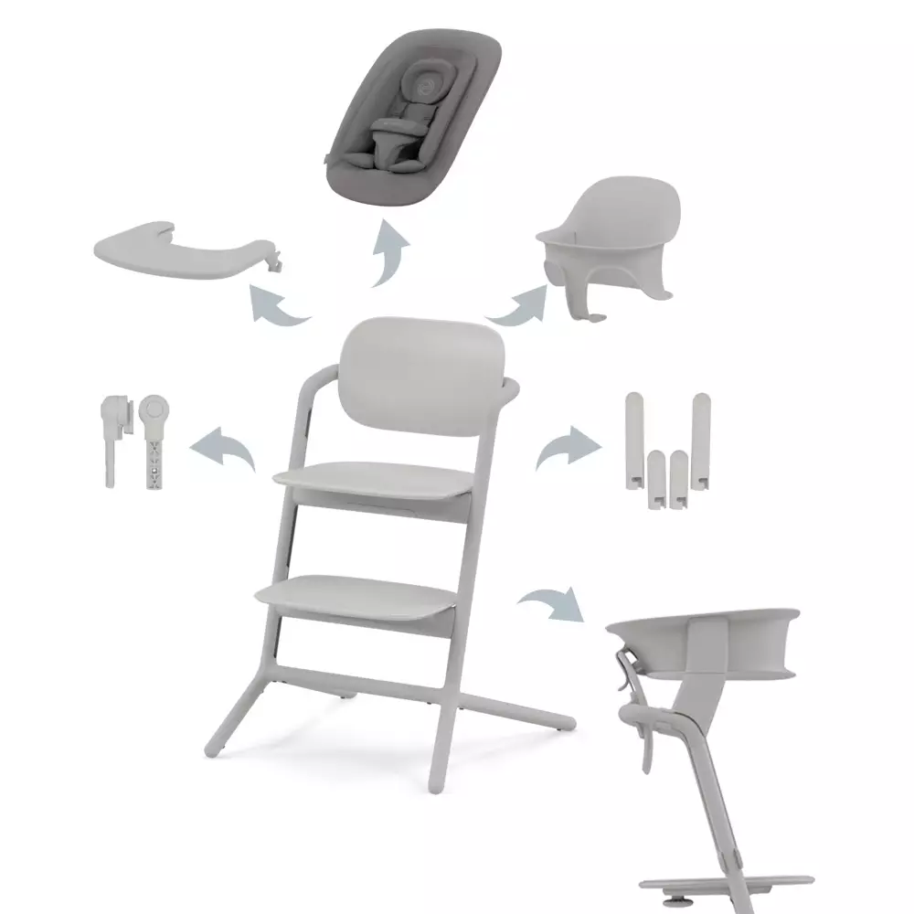 Startpaketet Cybex Lemo 4 i 1 Suede Grey & Training Tower-paketet innehåller en matstol, bouncer, baby set och en bricka samt Training Tower. Passar för användning från nyfött och uppåt. Cybex Lemo är en vacker och hållbar matstol som växer med barnet.