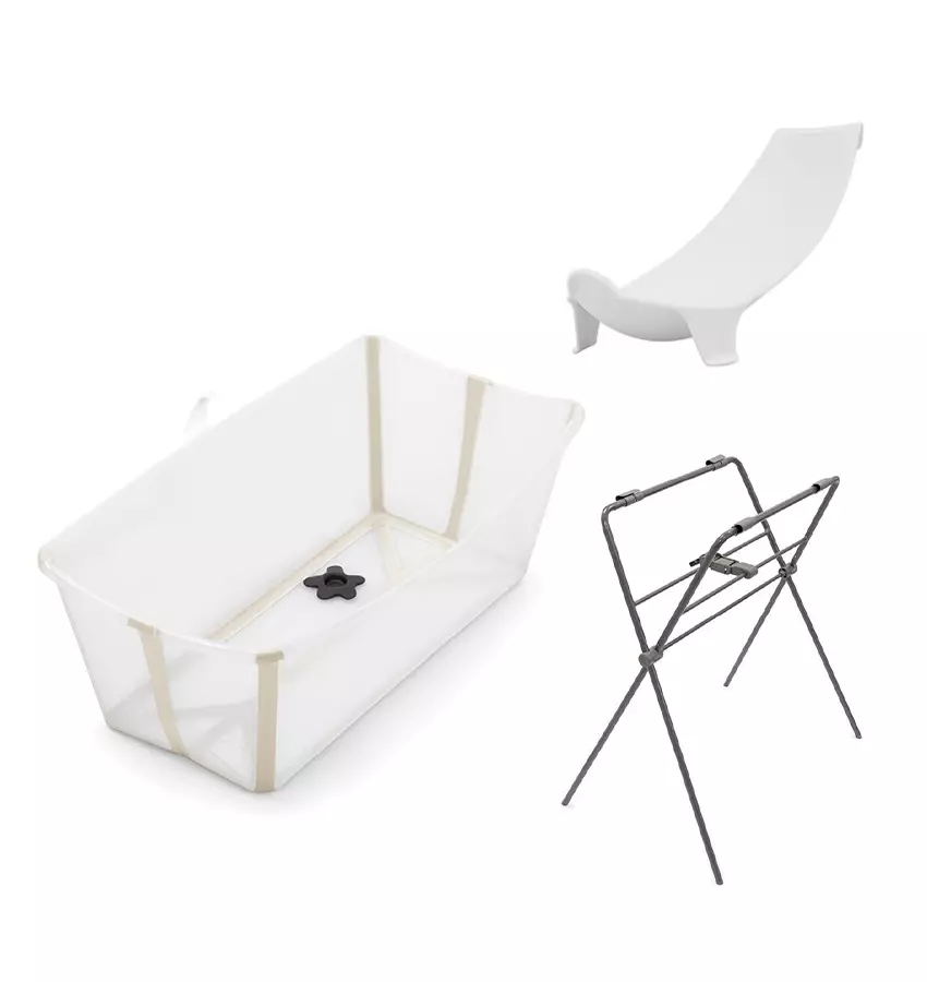 - Flexi Bath Stand, en badkarsstativ som höjer barnets badkar till en ergonomisk höjd och avlastar din rygg från onödig belastning. Badkaret töms med avloppsslangen. Badkarsstativet viks ihop med badkaret, så du behöver inte alltid montera badkaret och stativet separat.
